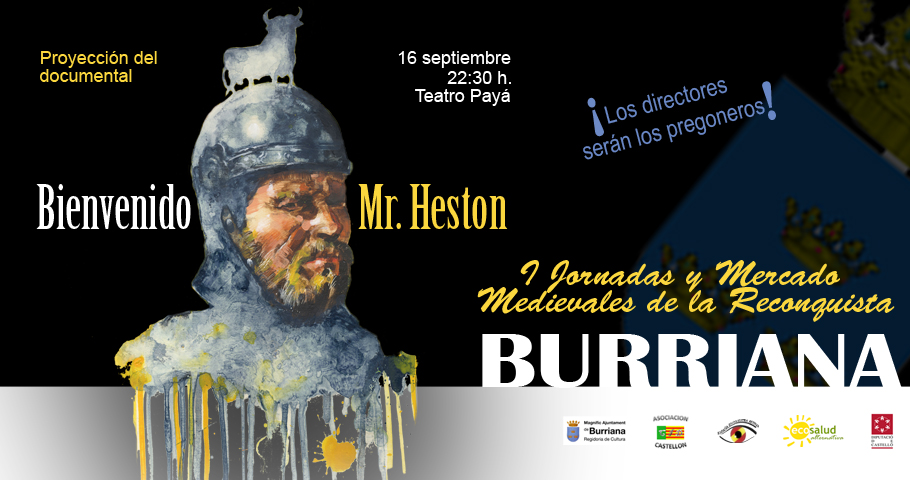 Por supuesto, en estas fiestas, podrá verse la película Bienvenido Mr. Heston encuadrada dentro de las actividades organizadas por la Asociación Cidiana de la provincia de Castellón. La proyección, prevista para el viernes 16 de septiembre, tendrá lugar a las 22.30 horas en el teatro Payá de Burriana. Posteriormente, se realizará un coloquio con la presencia de los directores. La entrada será de libre acceso hasta completar aforo.